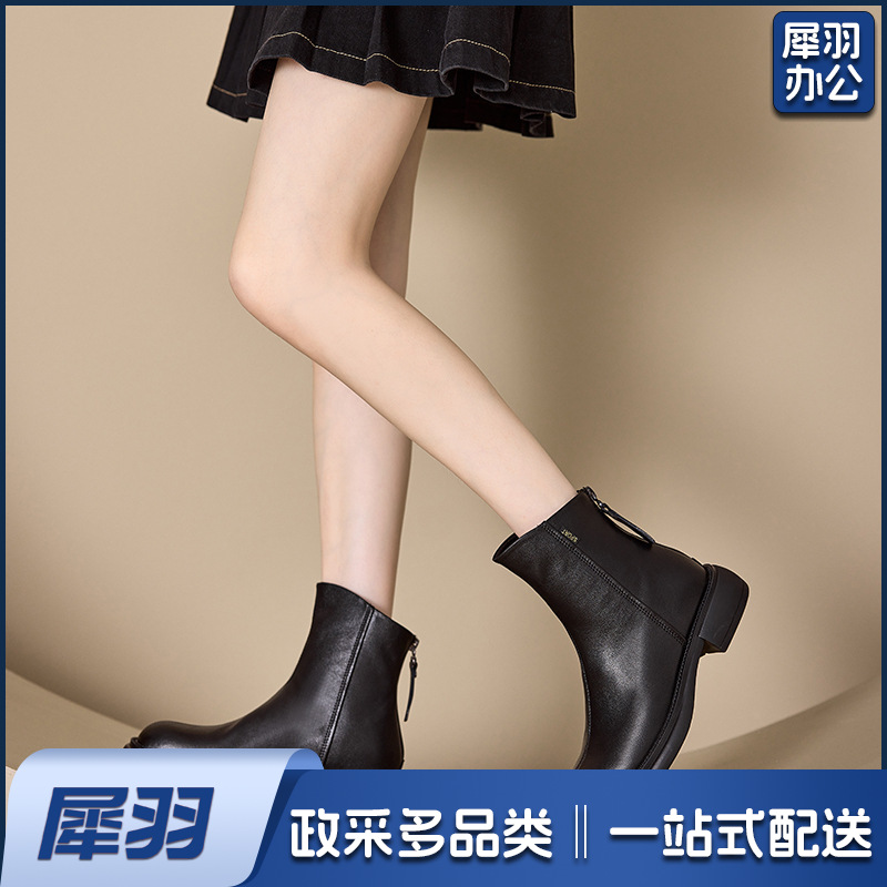 秋季新品真皮复古马丁靴女韩版后拉链显瘦女靴一脚蹬休闲女鞋
