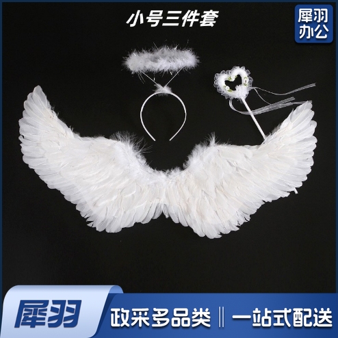 羽毛翅膀天使道具舞台表演儿童模仿走秀演出圣诞节日装饰三件套(小号)