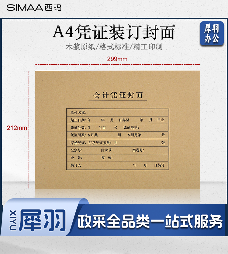 西玛(SIMAA) FM152 凭证封面套包25套(封面+封底)木浆120g 212*299mm配套 记账凭证纸费用报销单据 FM152