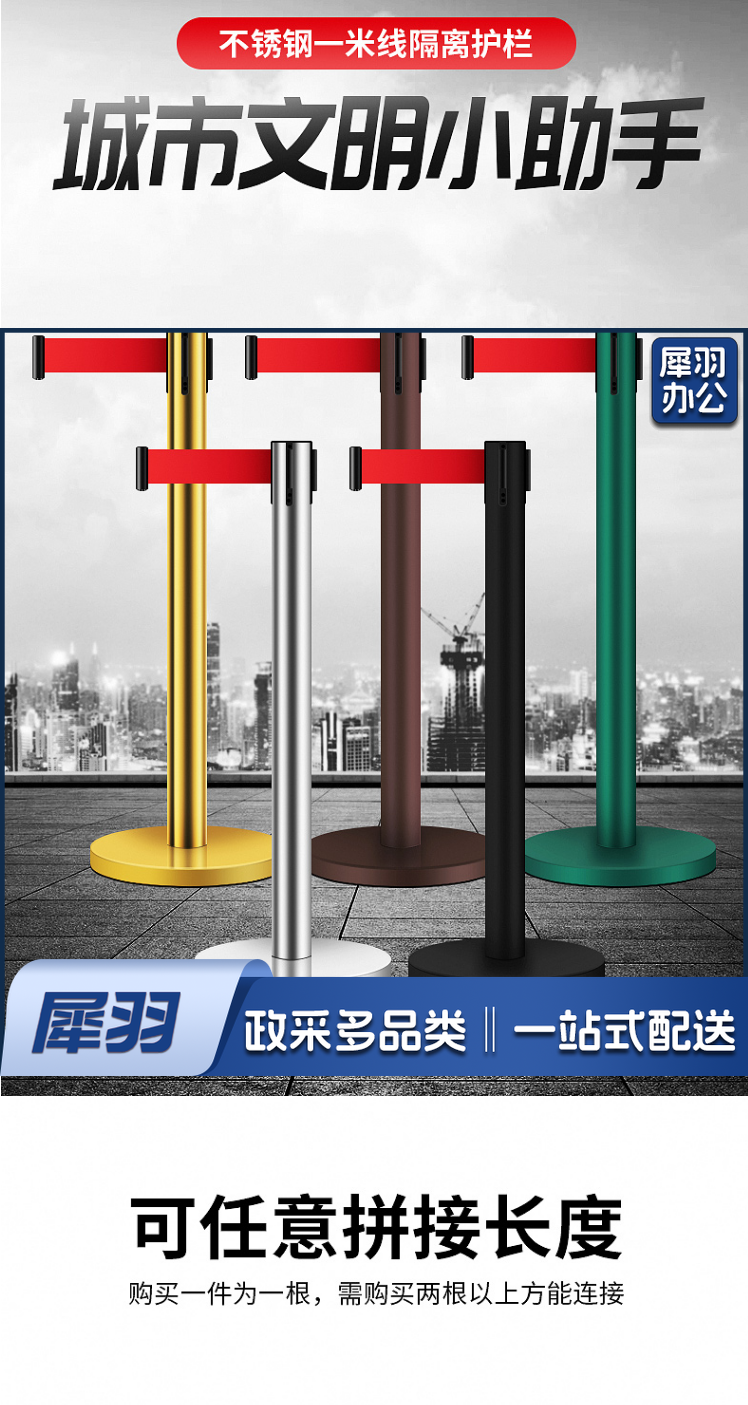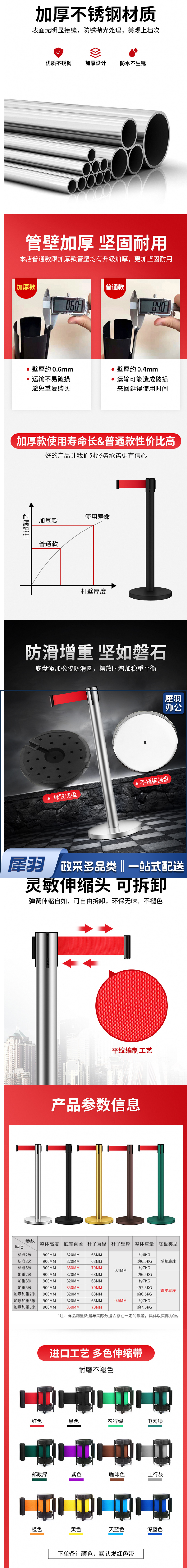 不锈钢一米线栏杆警戒线隔离带伸缩带 道路护栏围栏酒店机场学校排队加厚加重ZA1401不锈钢5米线