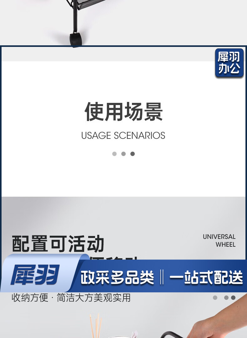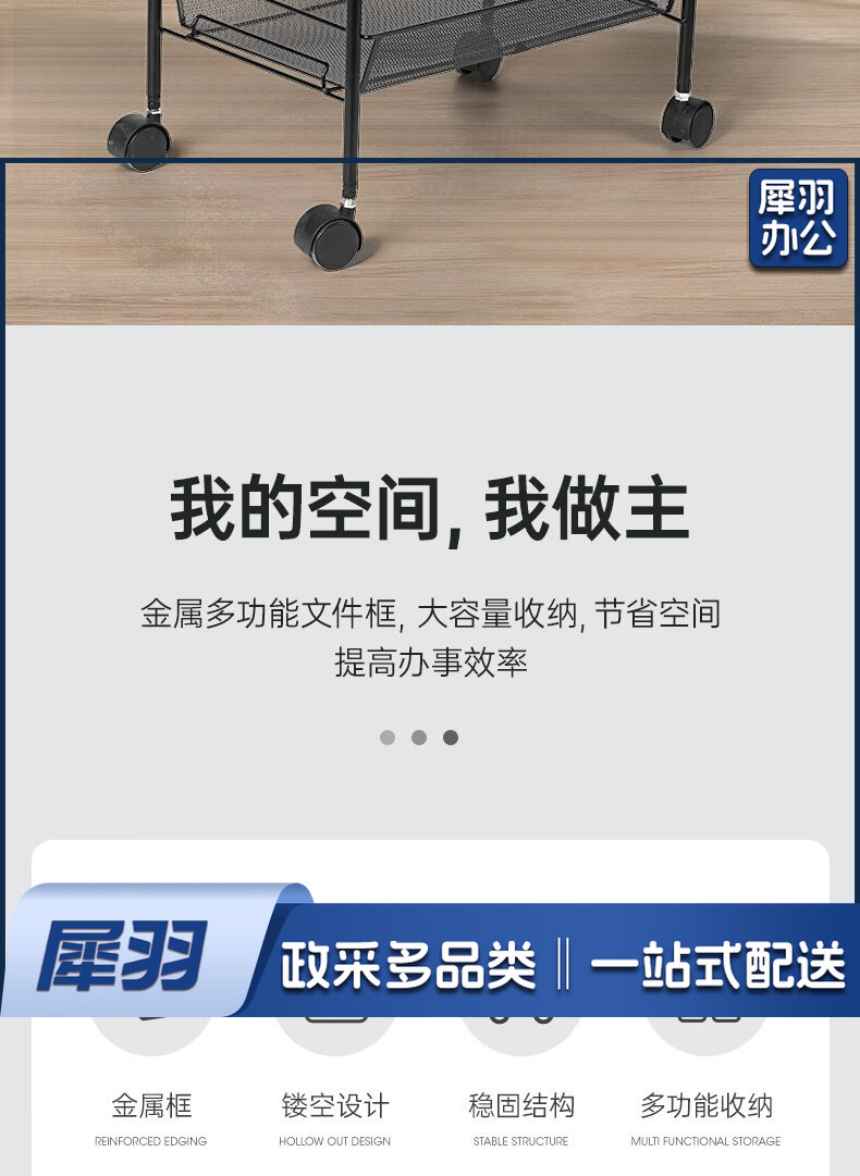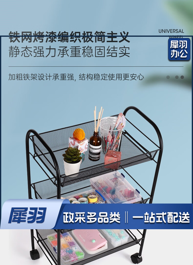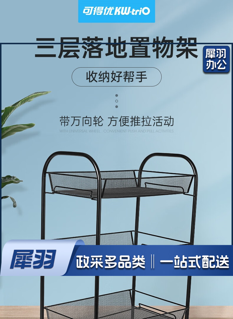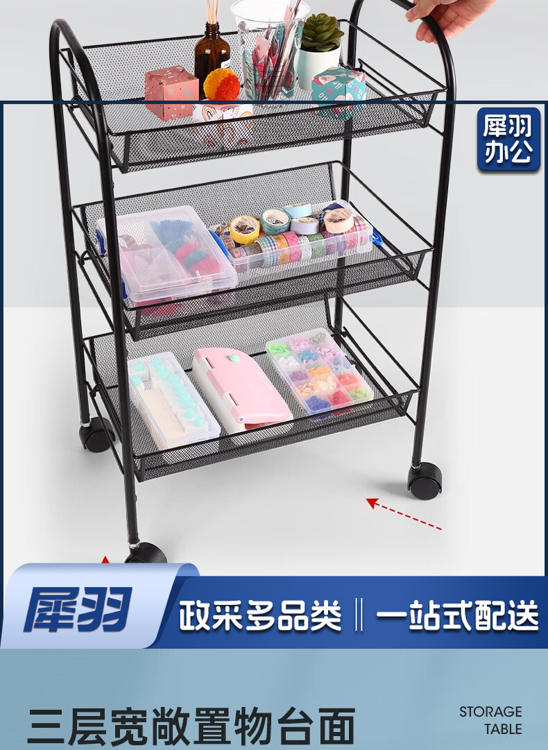 办公文件架落地可移动小推车多功能收纳架家用置物架客厅零食储物架 4层收纳架