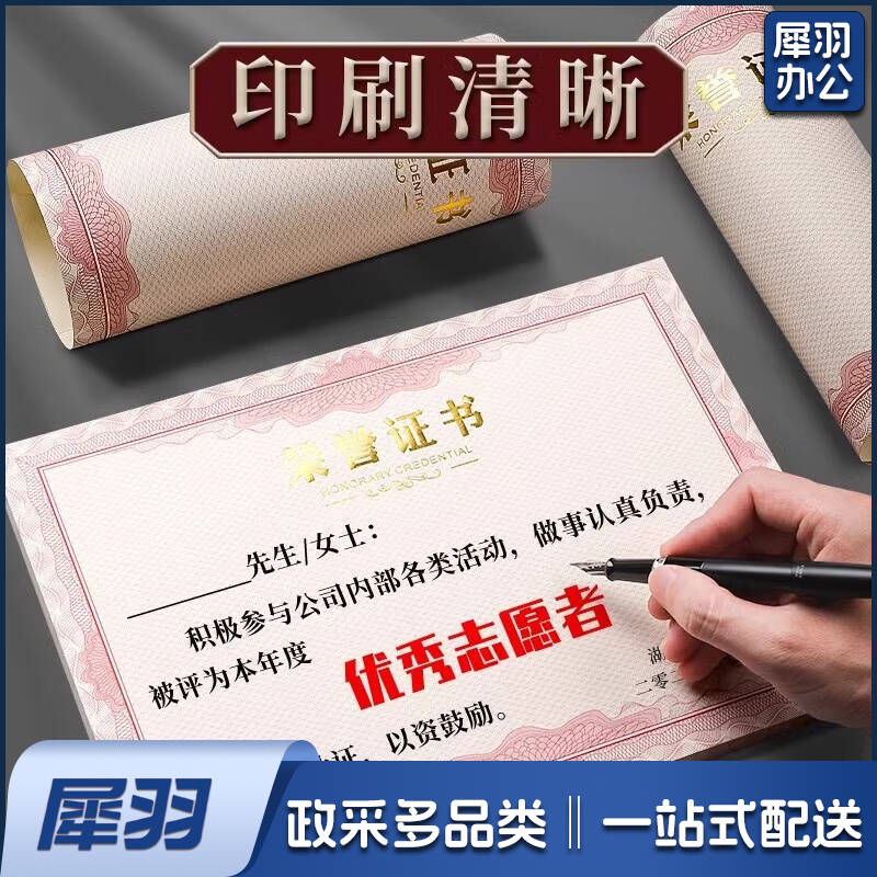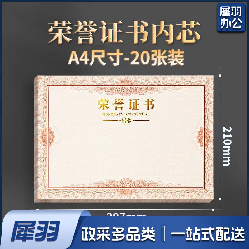 荣誉证书内芯12k加厚分享白奖状获奖证书内页可打印表扬信优秀员工荣誉证奖状纸大12开内芯-20张装
