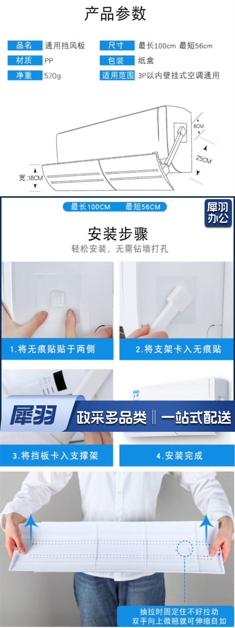 免打孔空调挡风板防直吹空调挡板遮风板格力美的海尔奥克斯挂式通用