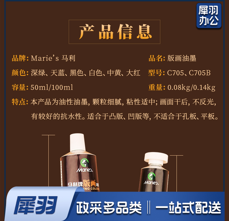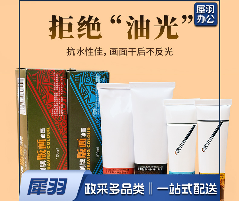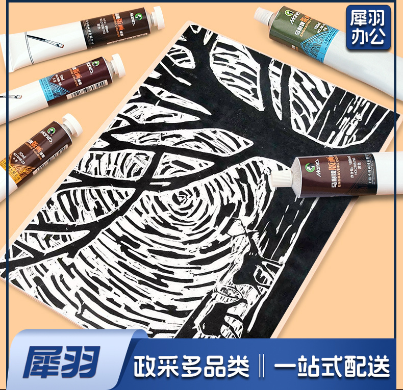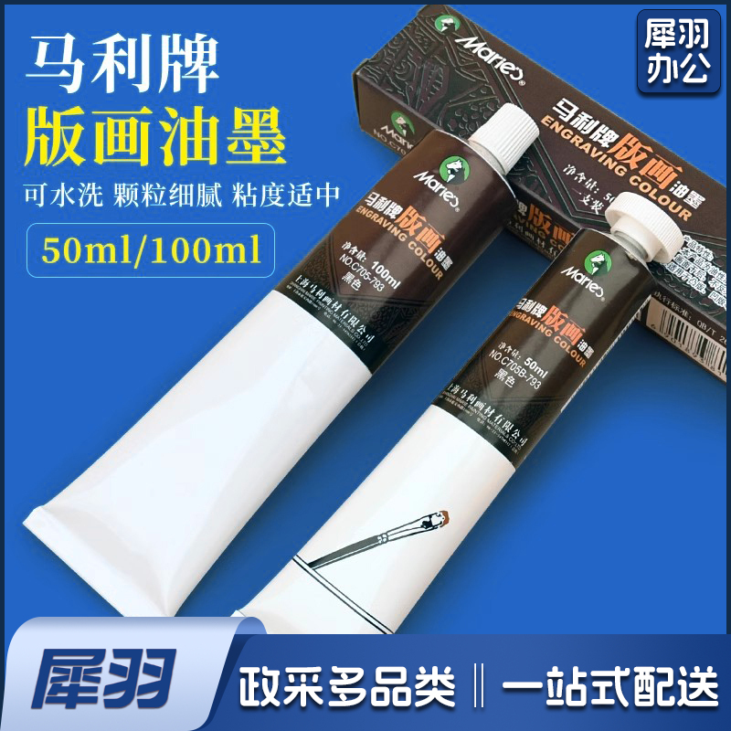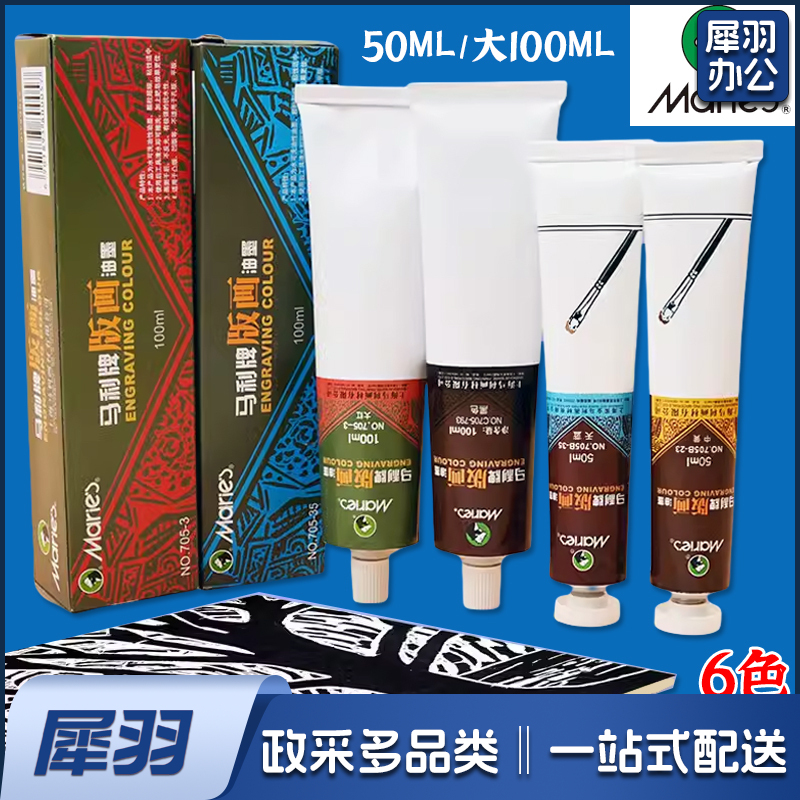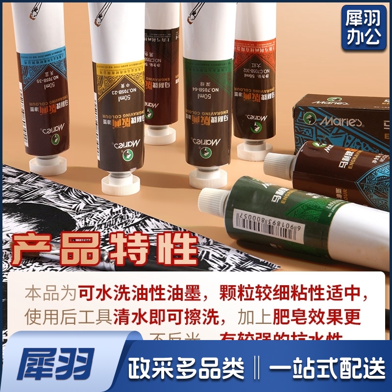 马利版画油墨可水洗油墨颜料彩色油性油墨(6色*50ml)
