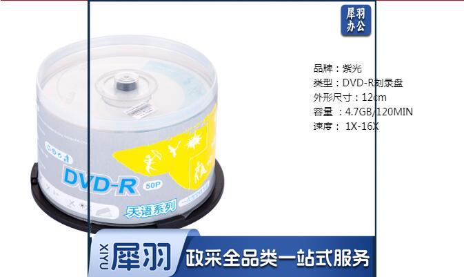 紫光(UNIS)DVD-R光盘/刻录盘 天语系列 16速4.7G(片) 单片价格 50片/桶 整桶销售