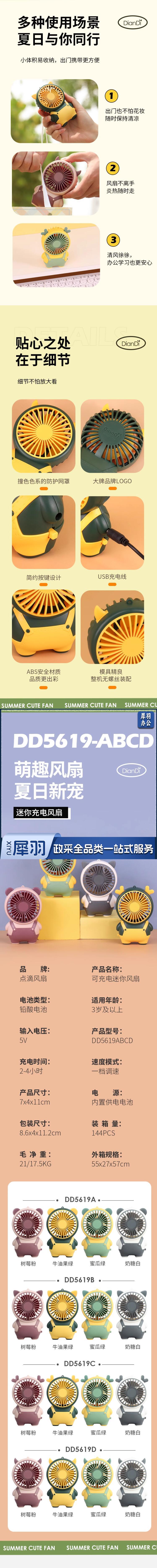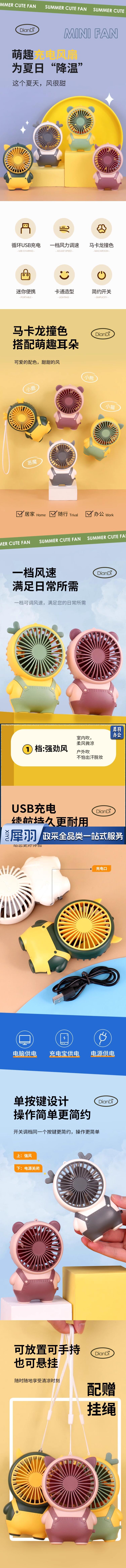 diandi卡通便携式手持充电小风扇 撞色撞款随机 发货