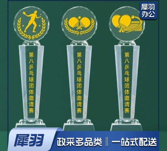 (小号27x7CM)乒乓球比赛水晶奖杯制作体育团体荣誉表彰免费刻字运动会新款奖牌