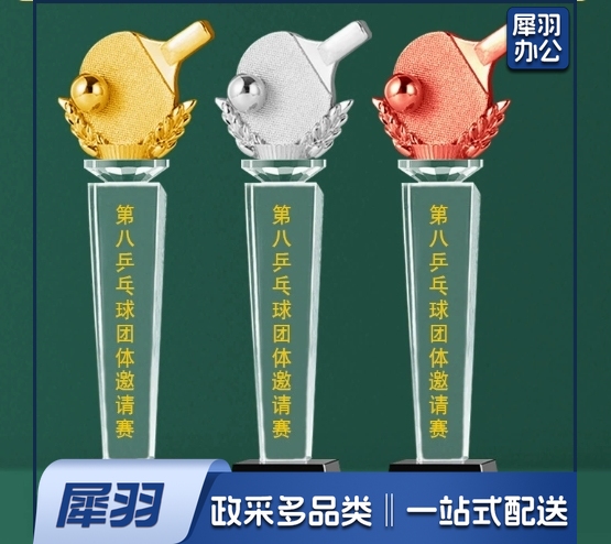 (均号15X7CM)乒乓球比赛水晶奖杯制作体育团体荣誉表彰免费刻字运动会新款奖牌