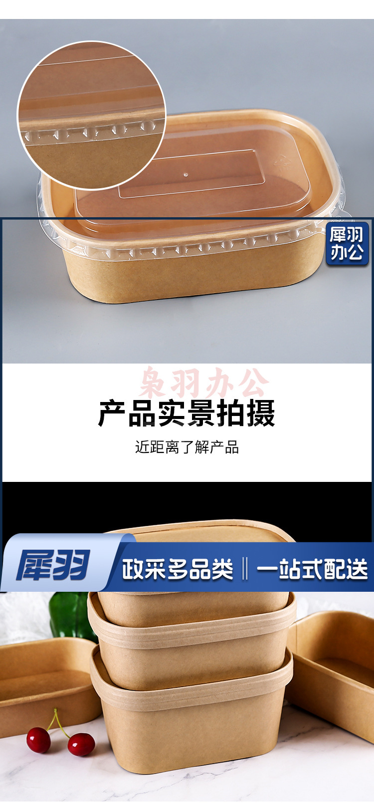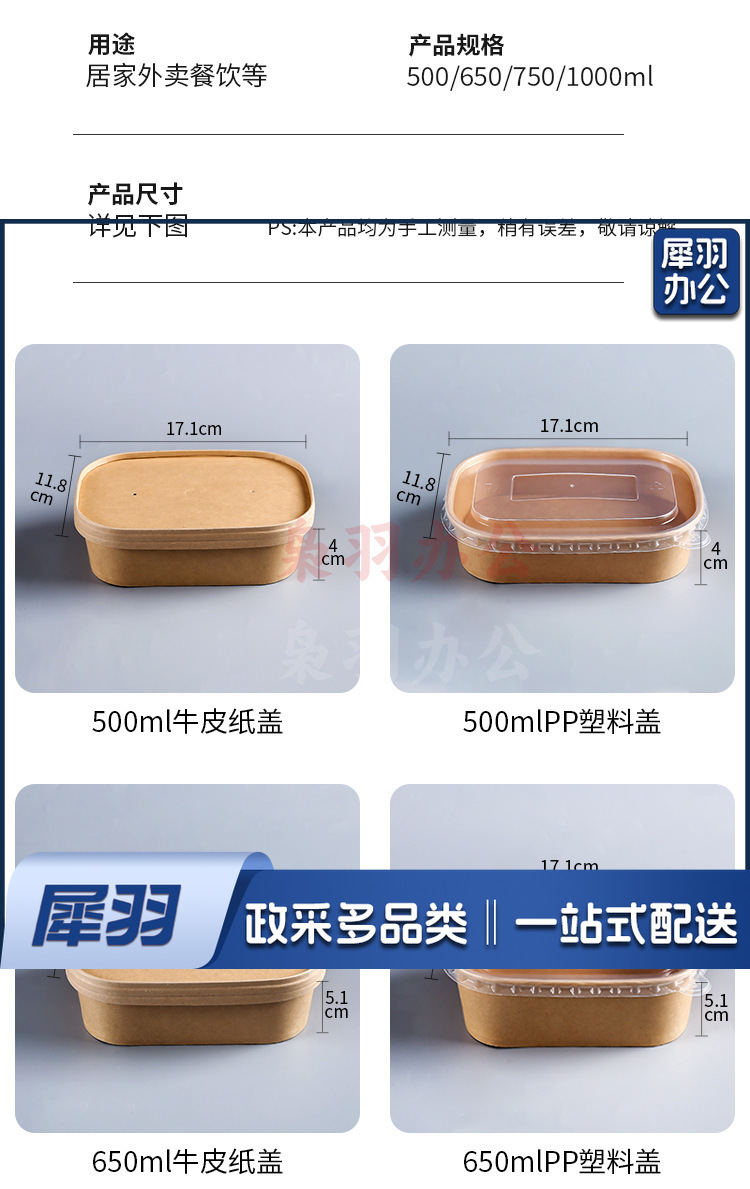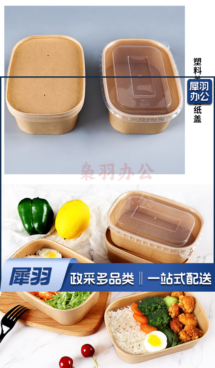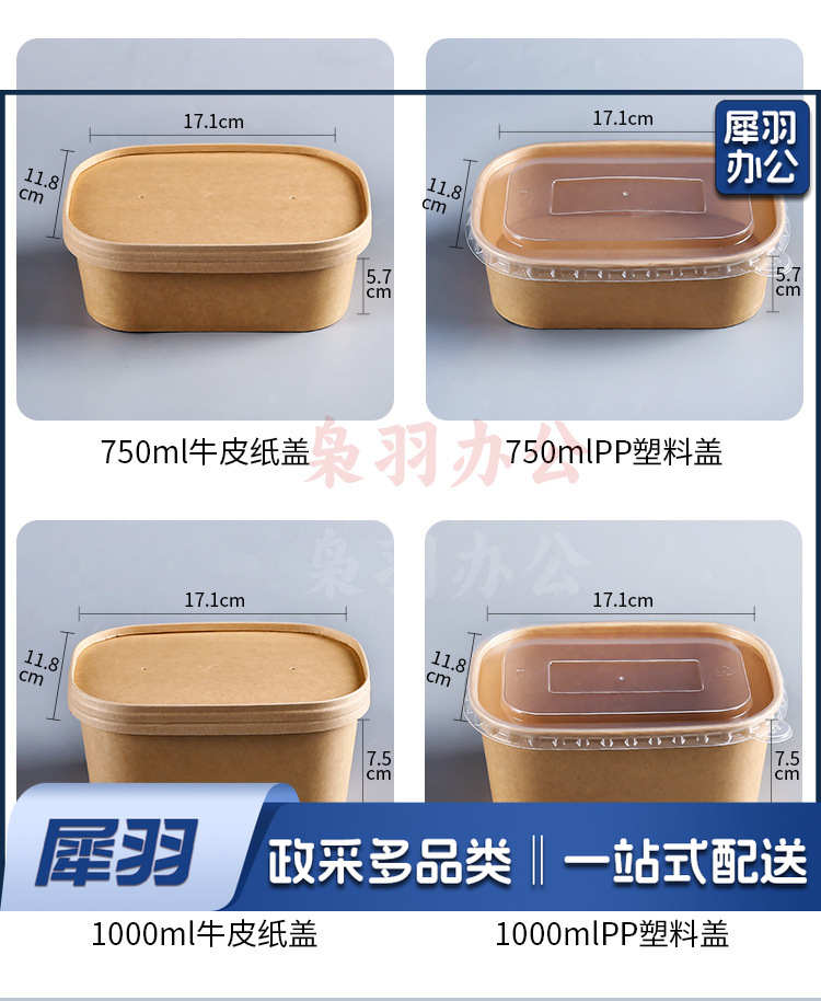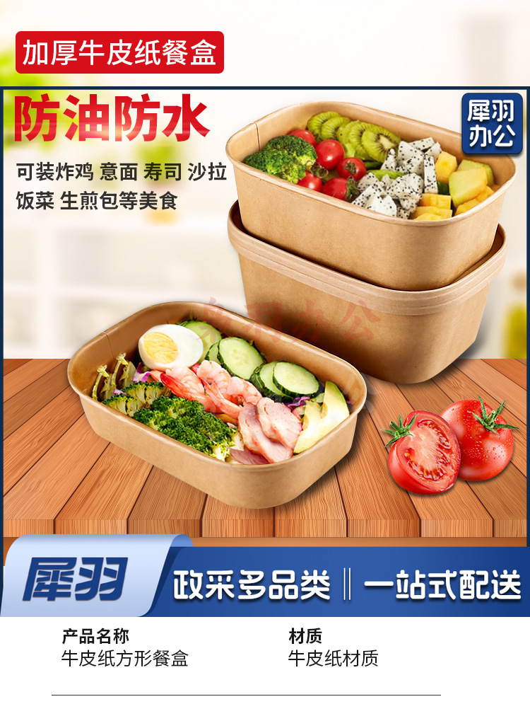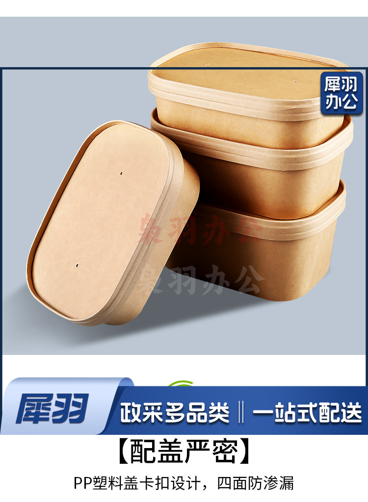 一次性纸碗牛皮纸打包盒野餐盒外卖可降解餐盒沙拉便当盒长方形碗750ml方形牛皮纸(不含盖,盖另拍)