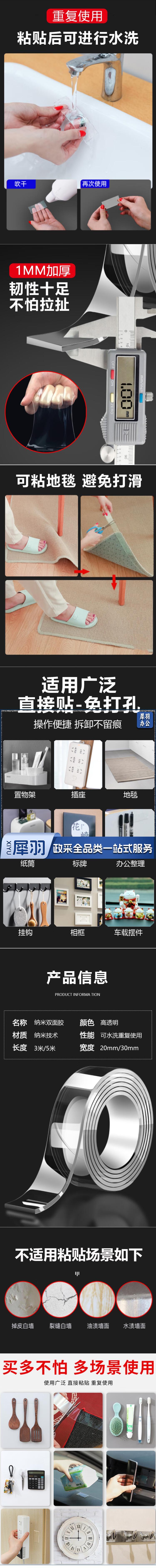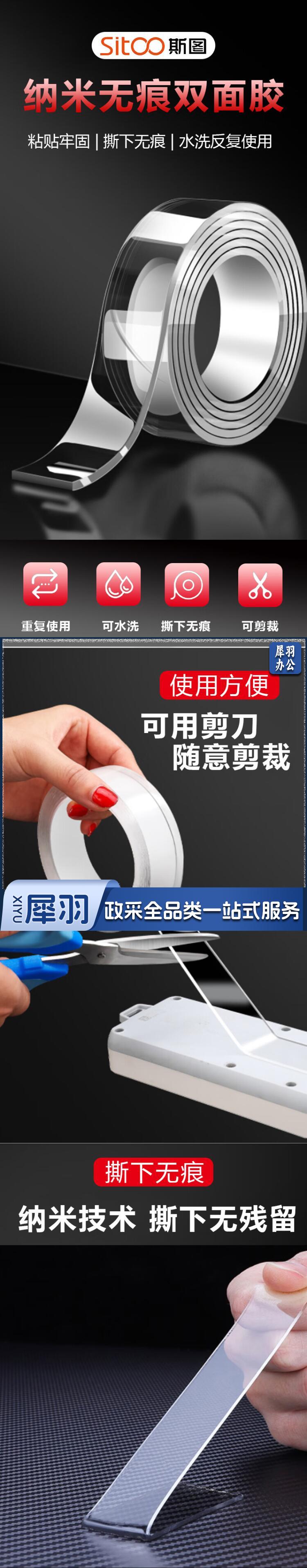 斯图sitoo 无痕纳米双面胶带 透明强力防水胶 20mm*3m 双面胶固定贴无痕车用家用春联对联贴 1卷装