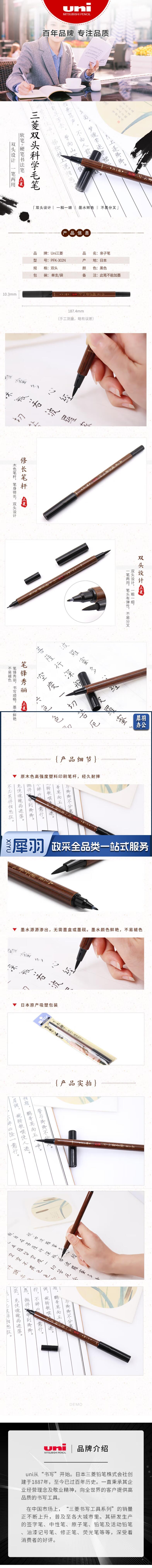 日本uni三菱毛笔PFK-302N双头亲子毛笔 科学软笔+硬笔 两用软头笔 黑色书法笔 PFK-302N 黑色 单支