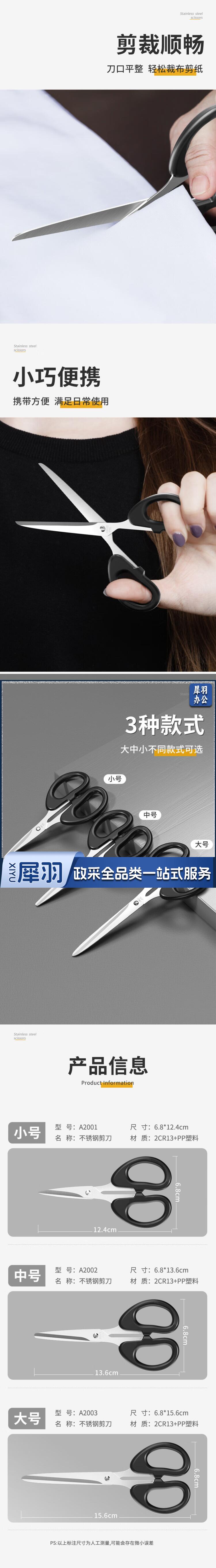 剪刀办公家用生活大中小号便携手工剪纸刀儿童学生安全办公用品1把装A2001