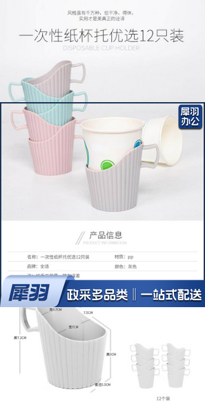 全适 一次性纸杯托 茶托家用办公杯座隔热托纸杯盒杯套 灰色 12个装