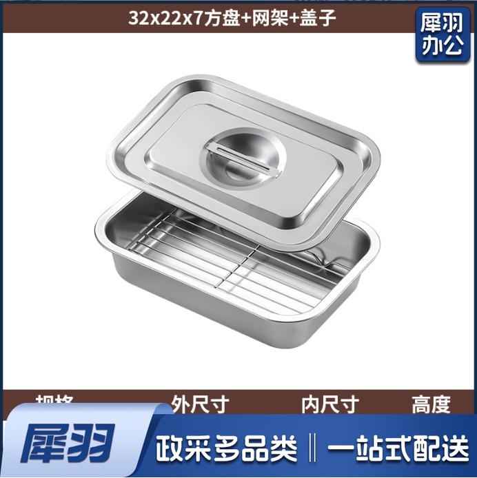 食品级不锈钢盘带过滤网方盘家用沥水托盘长方形置物烧烤沥油方盆