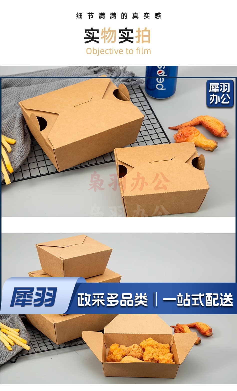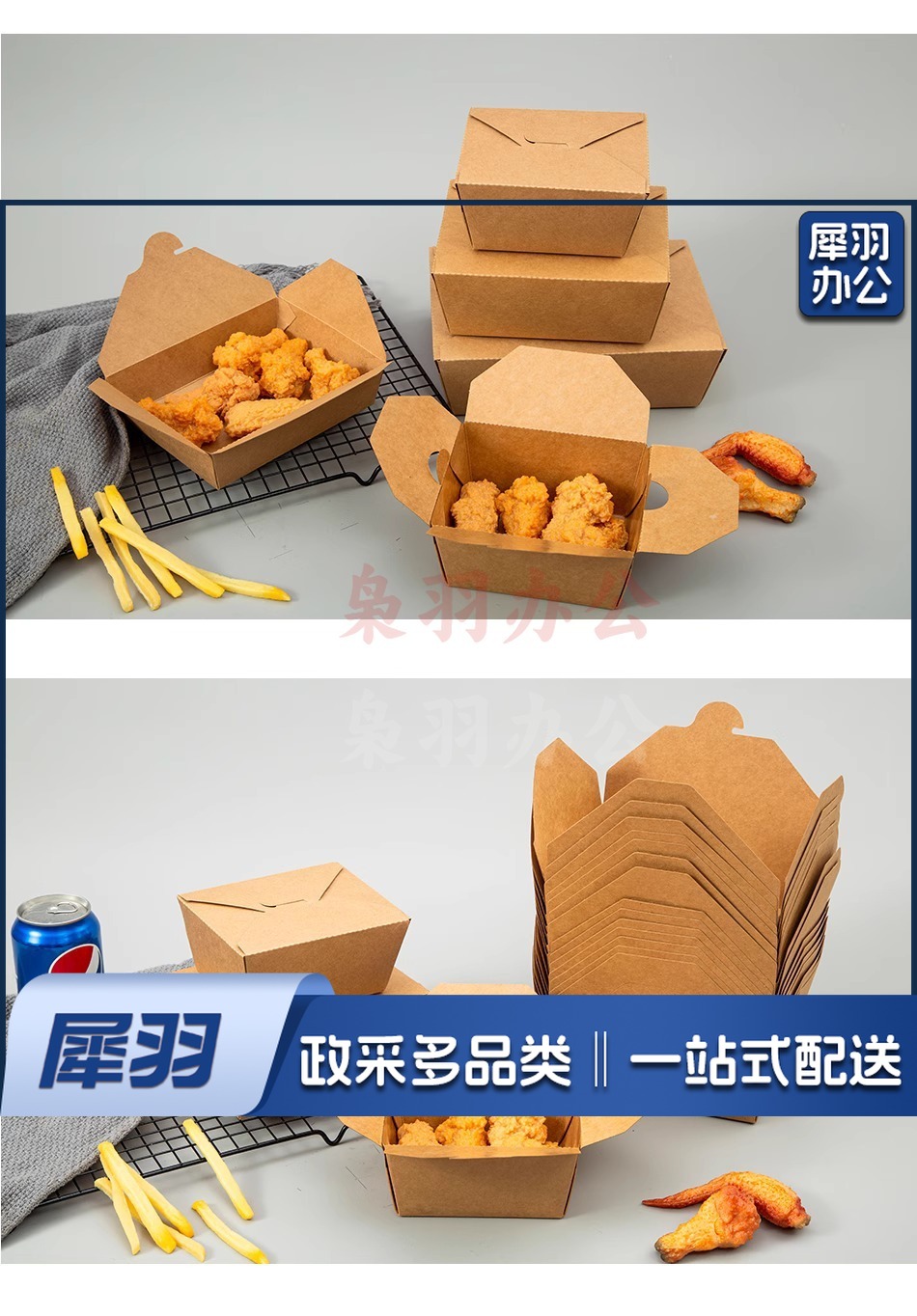 牛皮纸餐盒打包盒一次性商用韩式炸鸡盒油炸小吃外卖大中小包装盒牛皮纸5号餐盒【带气孔】