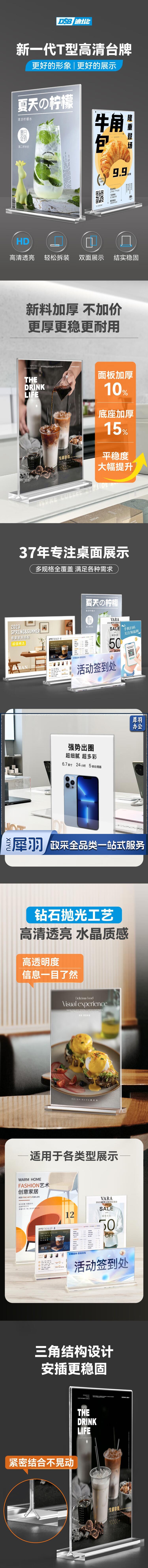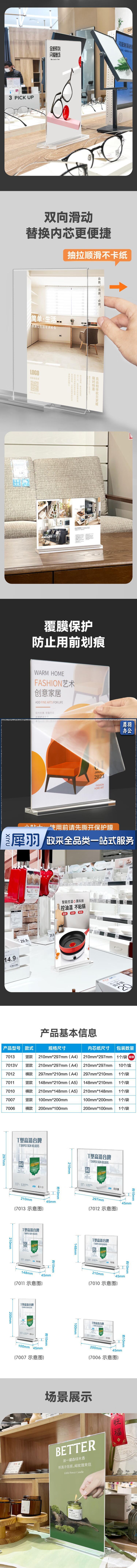 桌牌席卡亚克力T型台卡台签会议牌桌签牌席卡座位牌广告展示牌 297mm*210mm A4 横款7012 专注桌面展示37年