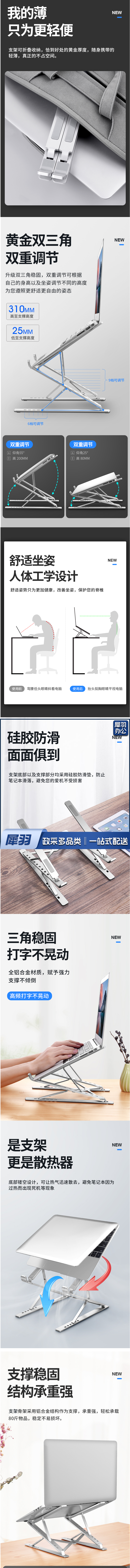 笔记本电脑支架 N8 电脑增高架 铝合金两层氧化款