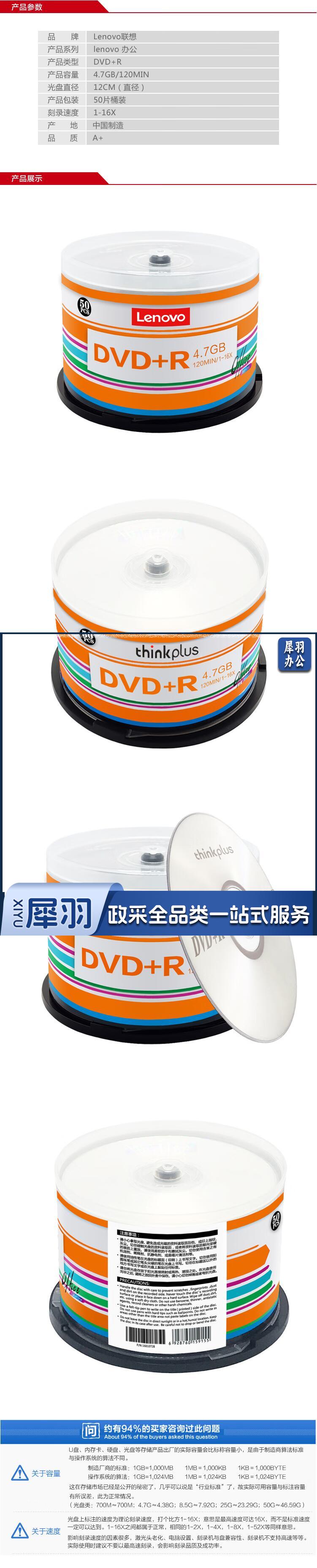 联想(Lenovo)DVD+R 光盘/刻录盘 16速4.7GB 办公系列 桶装50片 空白光盘