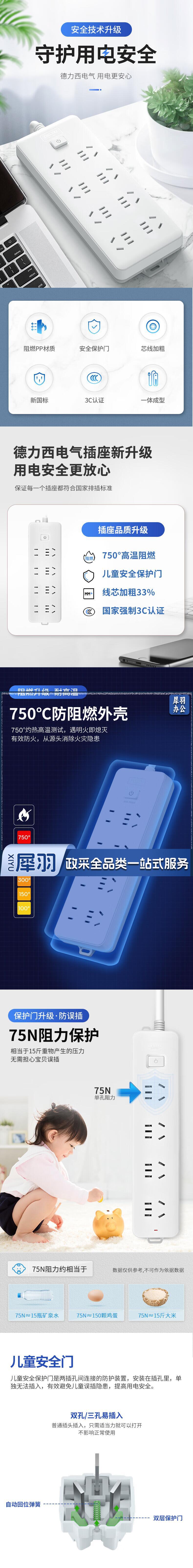 德力西(DELIXI)新国标插座 带开关插线板/插排/排插/拖线板/插板/接线板 4位总控 3米 K4X