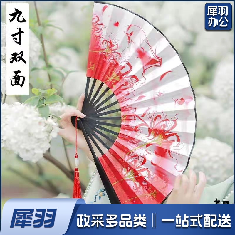 汉服扇子折扇女式双面古风九寸折叠扇中国风古装扇子女扇夏季竹扇(其他样式可咨询)
