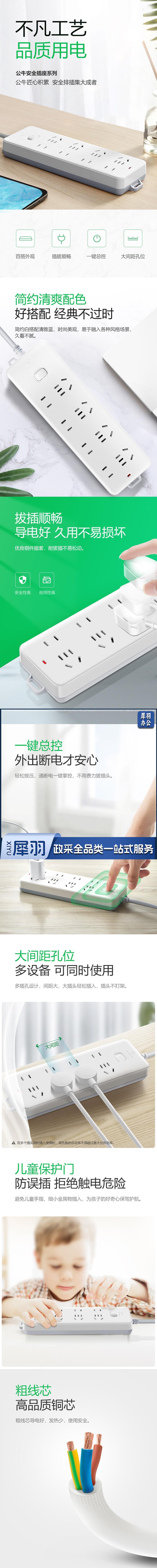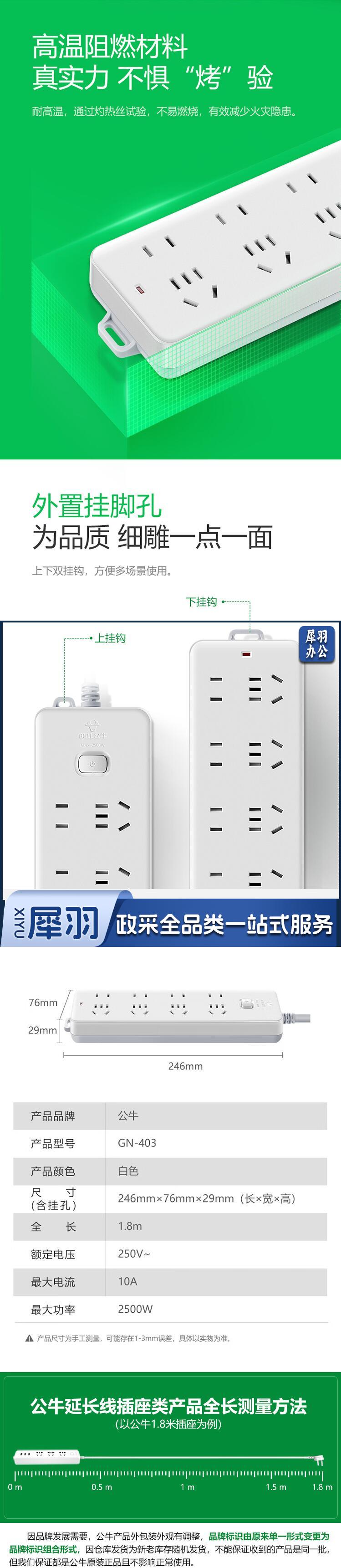 公牛(BULL)新国标插座 插线板/插排/排插/接线板/拖线板 8位总控全长1.8米 GN-403