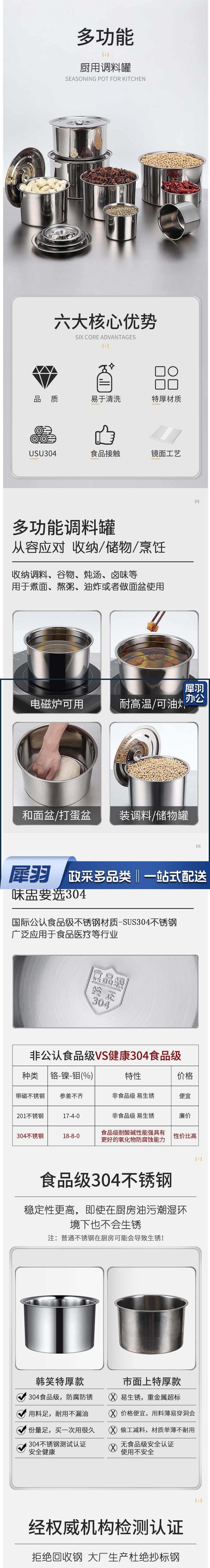 304不锈钢调料罐 调料缸 耐高温调味盅 直径约16cm 高约10cm