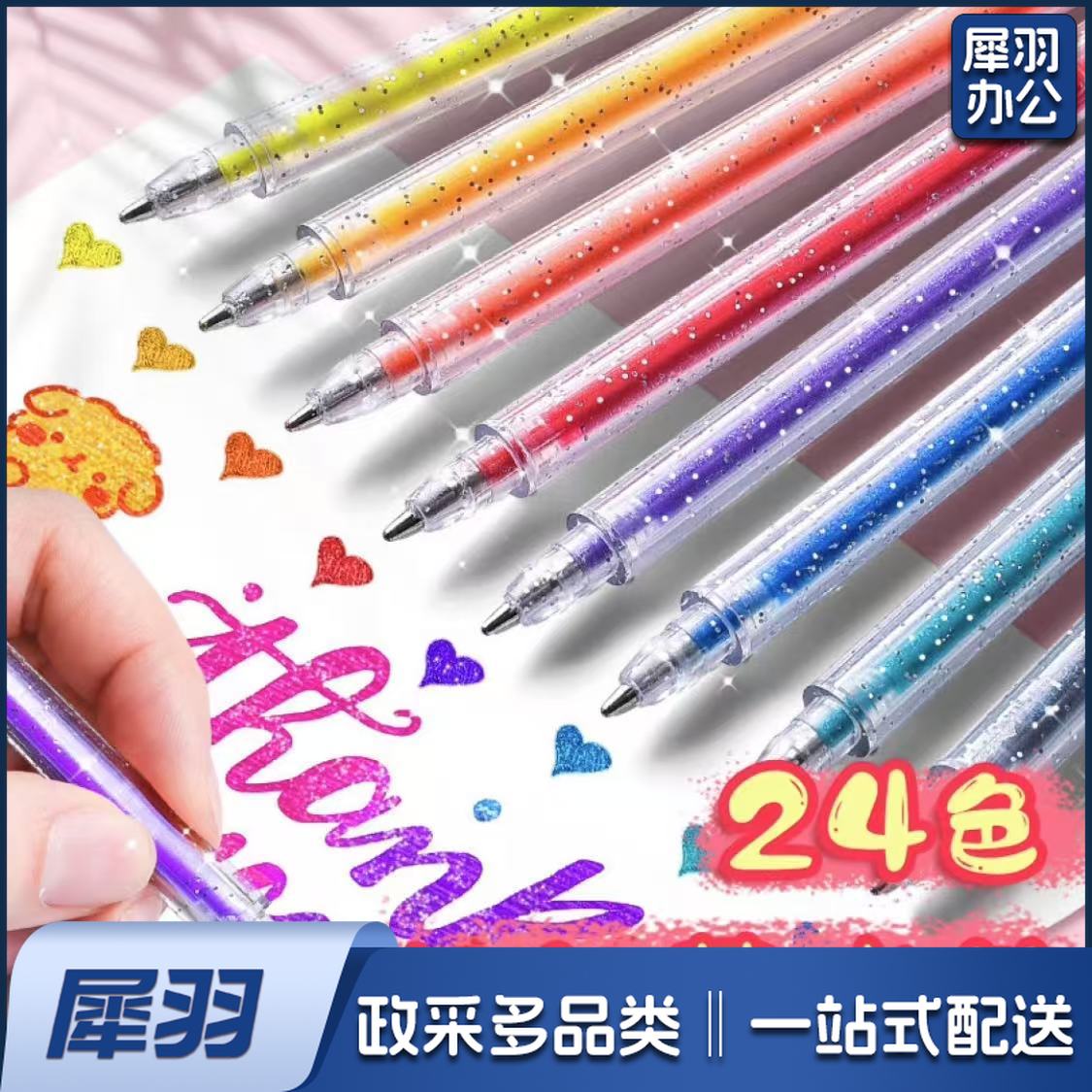 彩色闪光啫喱金光流沙笔彩色手帐笔珠光金属色中性笔啫喱笔1.0mm(24色/盒)