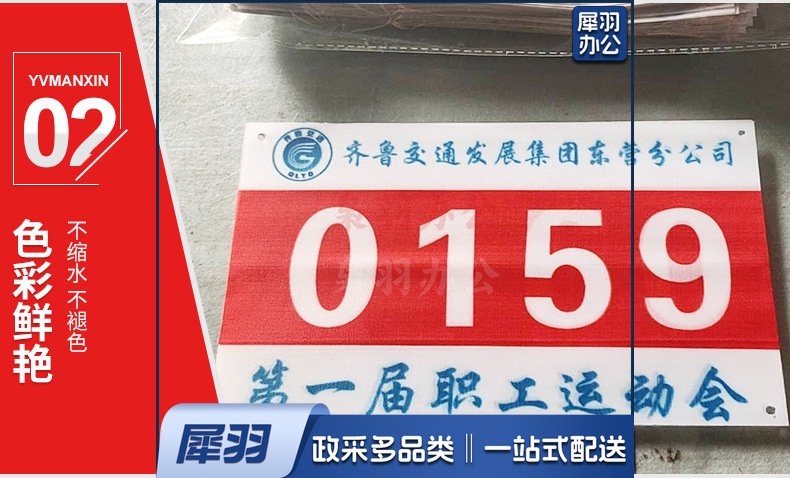 25CM*17CM 号码薄运动员号码布空包 田径运动会马拉松比赛号码牌号码布