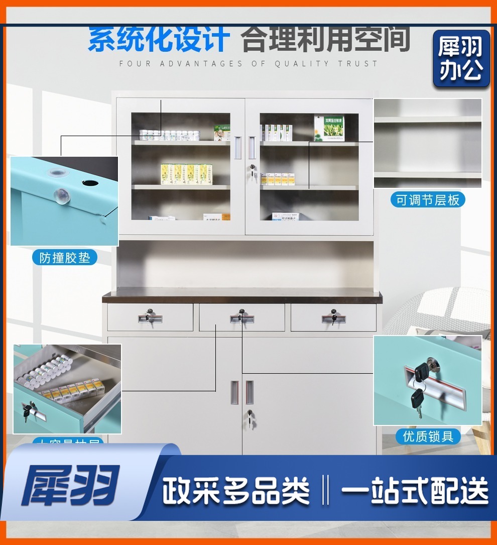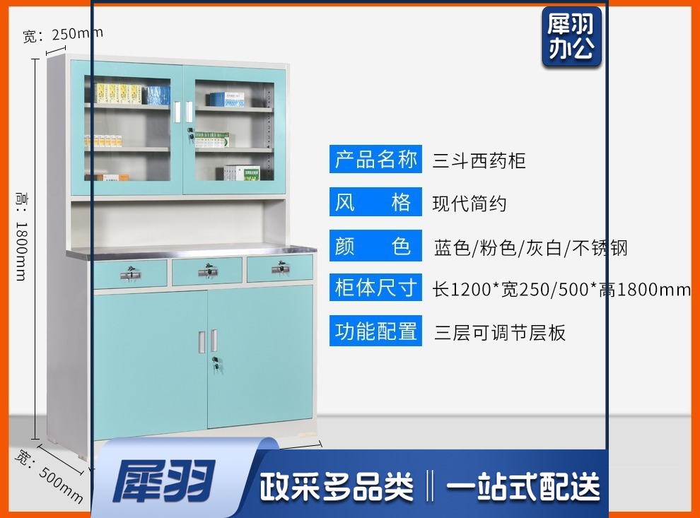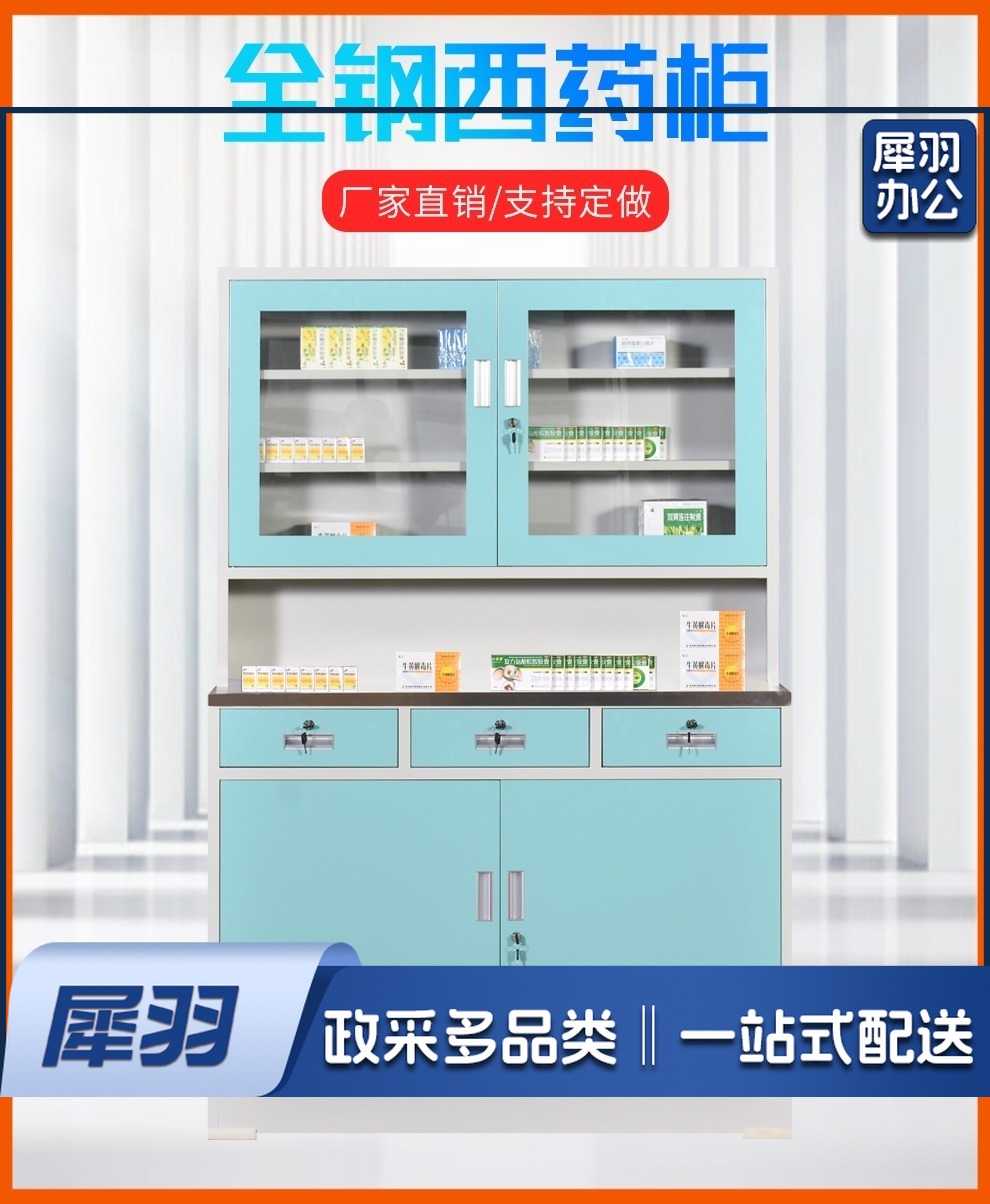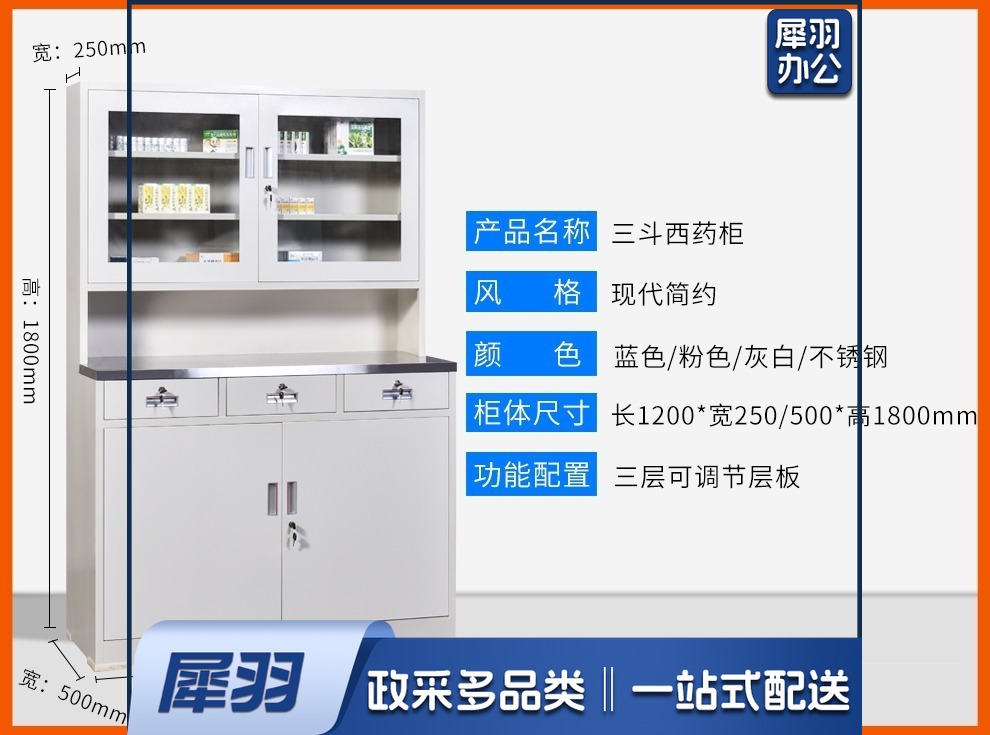 西药柜药房配药柜诊所医务室柜柜医处置台操作台药品柜调剂柜牙科药 三斗西(灰白) 安全用仪器