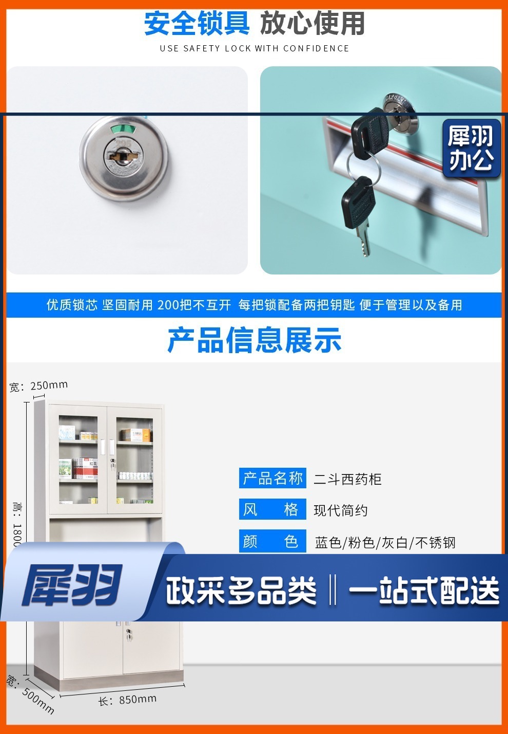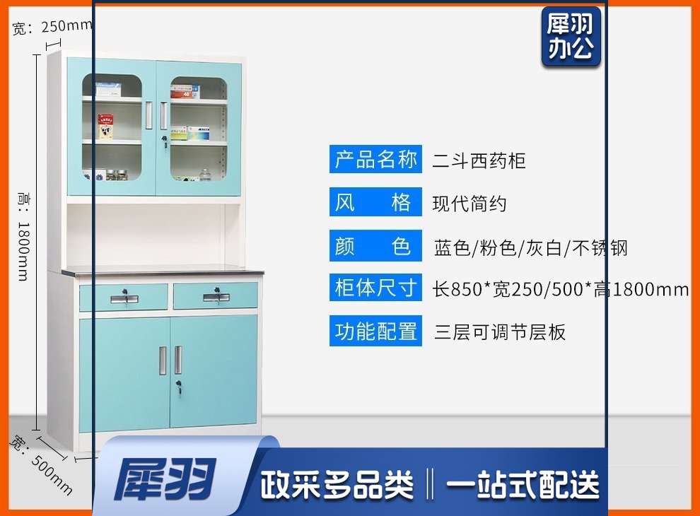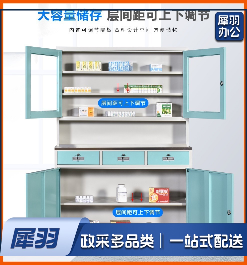 西药柜药房配药柜诊所医务室柜柜医处置台操作台药品柜调剂柜牙科药 三斗西(灰白) 安全用仪器