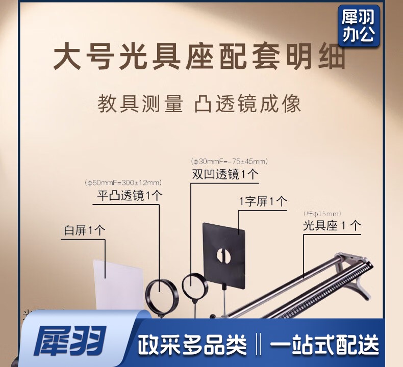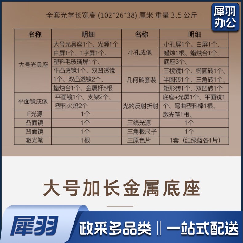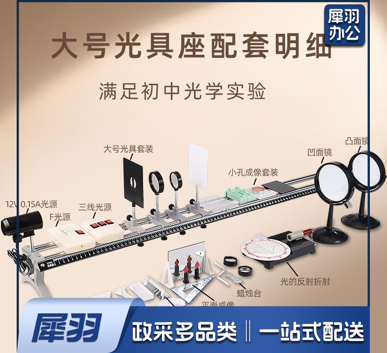 初中物理光具座光学实验器材大号凹凸透镜学生用初二七年级光学实验教具演示成像规律科学套装全套教学仪器 物理全套