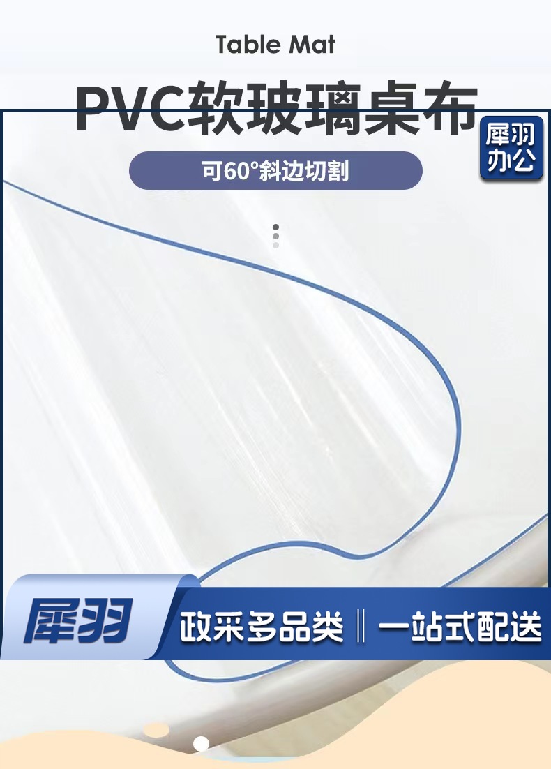 桌垫透明PVC防水软玻璃桌布 环保无味餐桌垫水晶板塑料台布 透明(2.0mm厚)圆角斜边,尺寸60cm*120cm,多种尺寸可以定制,详情请咨询客服人员