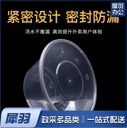 圆形1500ML加厚一次性餐盒饭盒外卖打包盒塑料透明快餐盒汤碗带盖