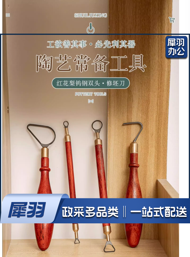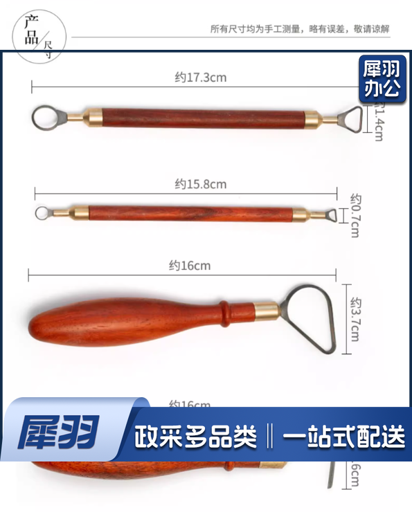 陶艺工具泥塑刮坯修坯工具肌理环形刀红花梨钨钢双头修坯刀
