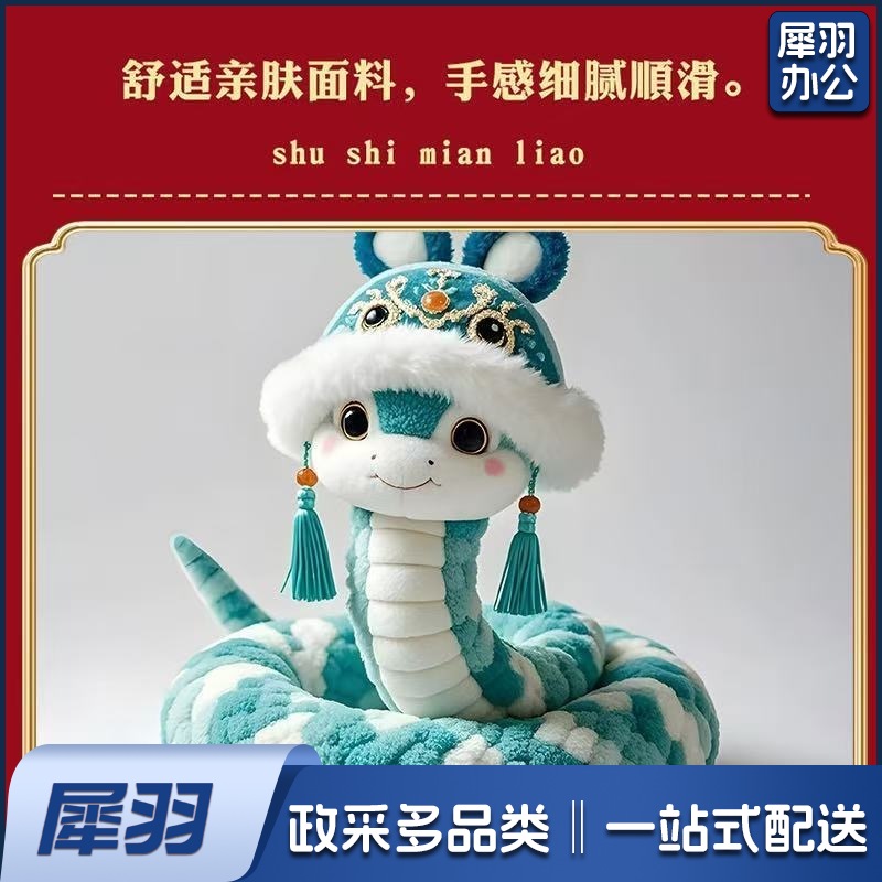 蛇年仔儿童毛绒玩具布娃娃2025蛇年吉祥物玩偶礼品国风优雅蛇25cm-40cm