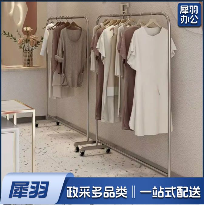 不锈钢服装展示架落地衣架带移动轮 长*高120cm*165cm