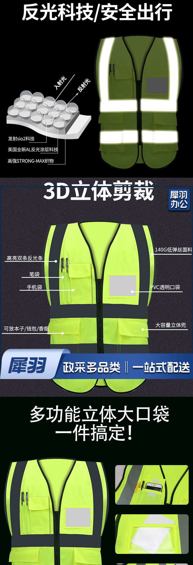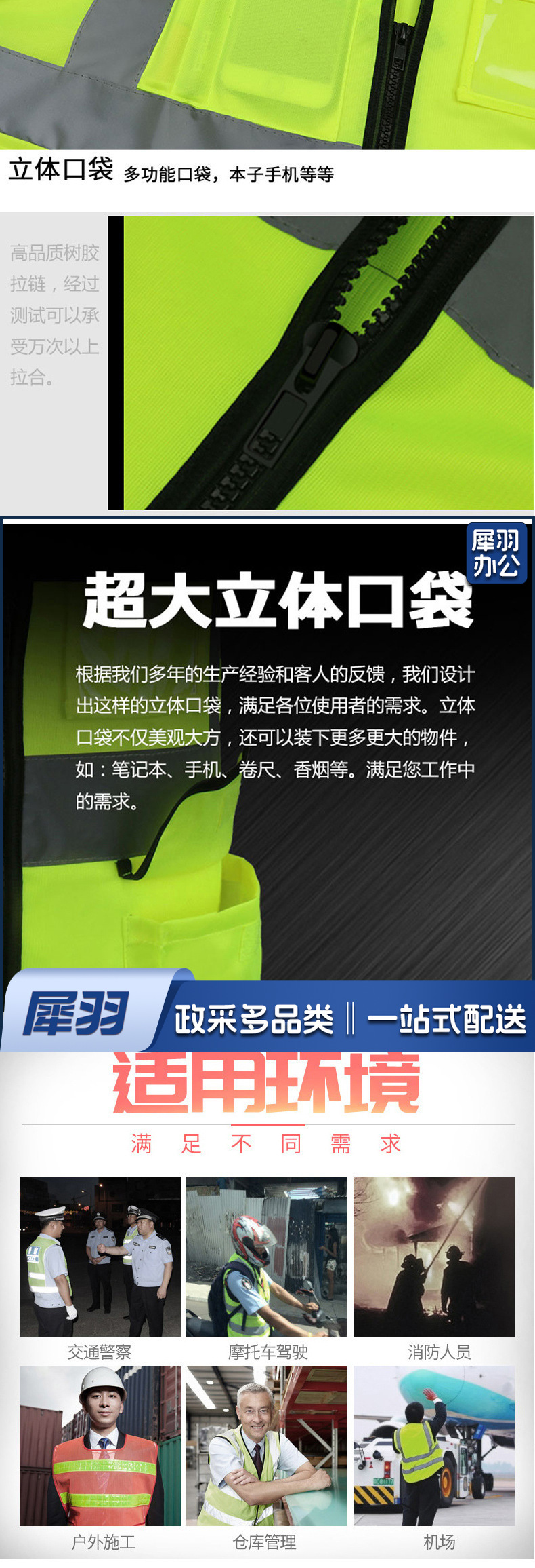 背心反光马甲反光背心高亮多袋均码反光马甲安全指挥应急救援夜跑骑行现货