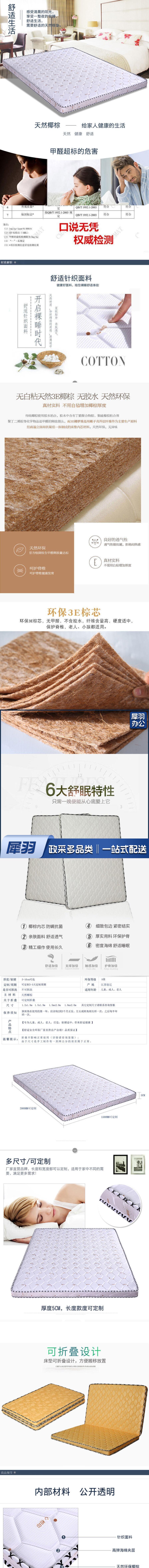 椰棕床垫偏硬单人床垫1900*940*60棕垫
