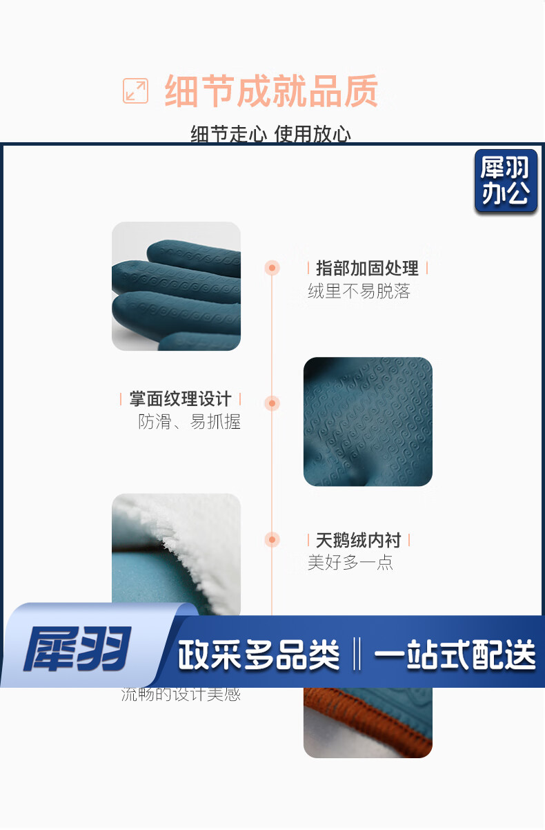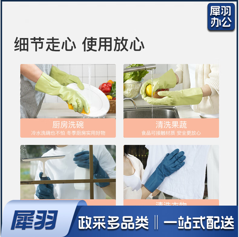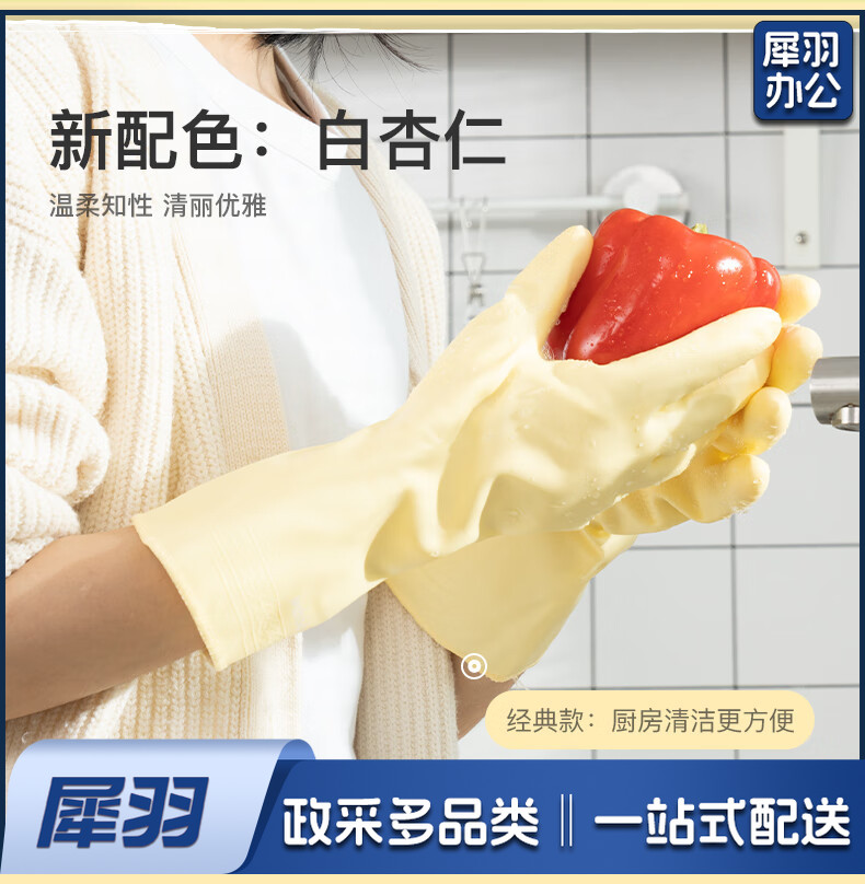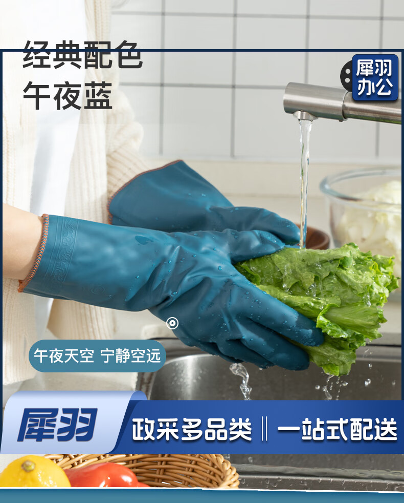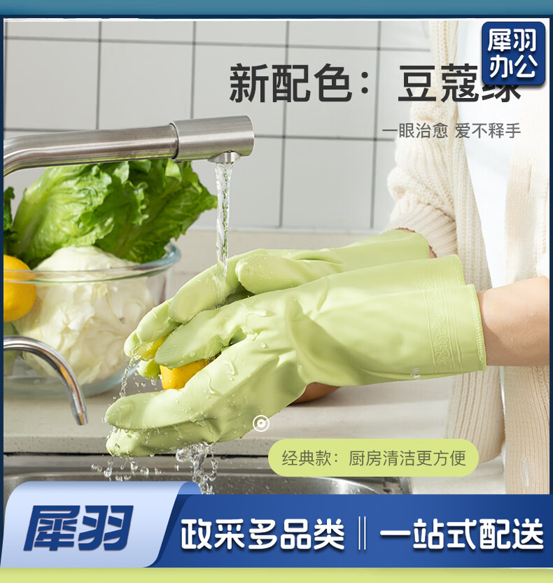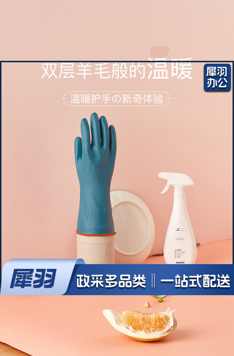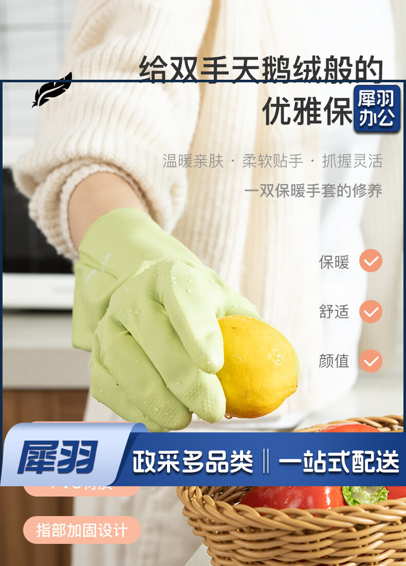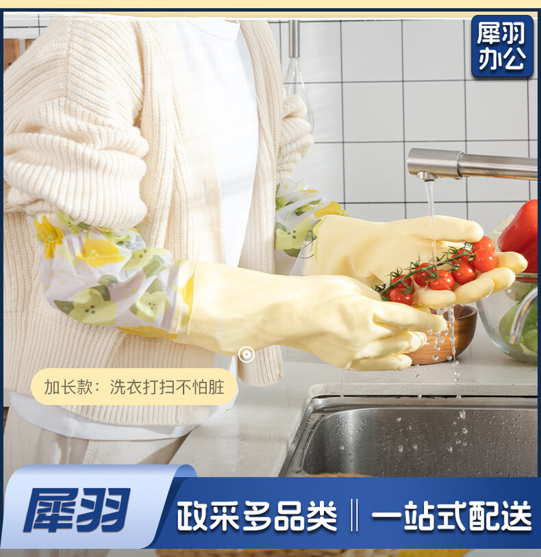 洗碗手套 短款型家务手套 橡胶皮手套 加厚加绒手套1双装