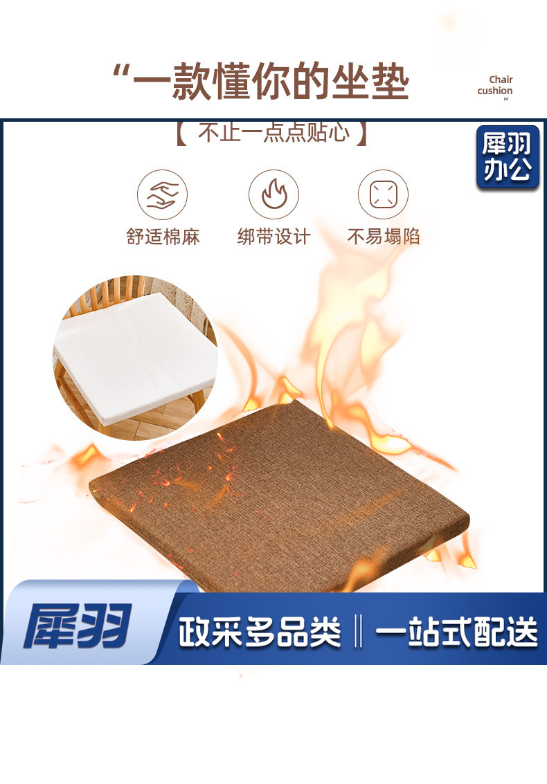 冬季坐垫办公室久坐屁垫棉麻椅垫垫子地上学生厚餐椅座垫40*40cm(4cm厚)