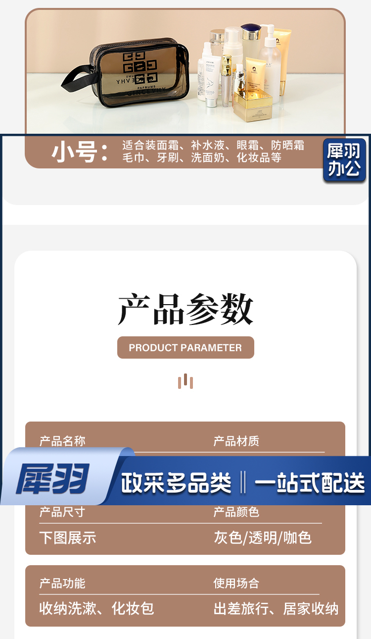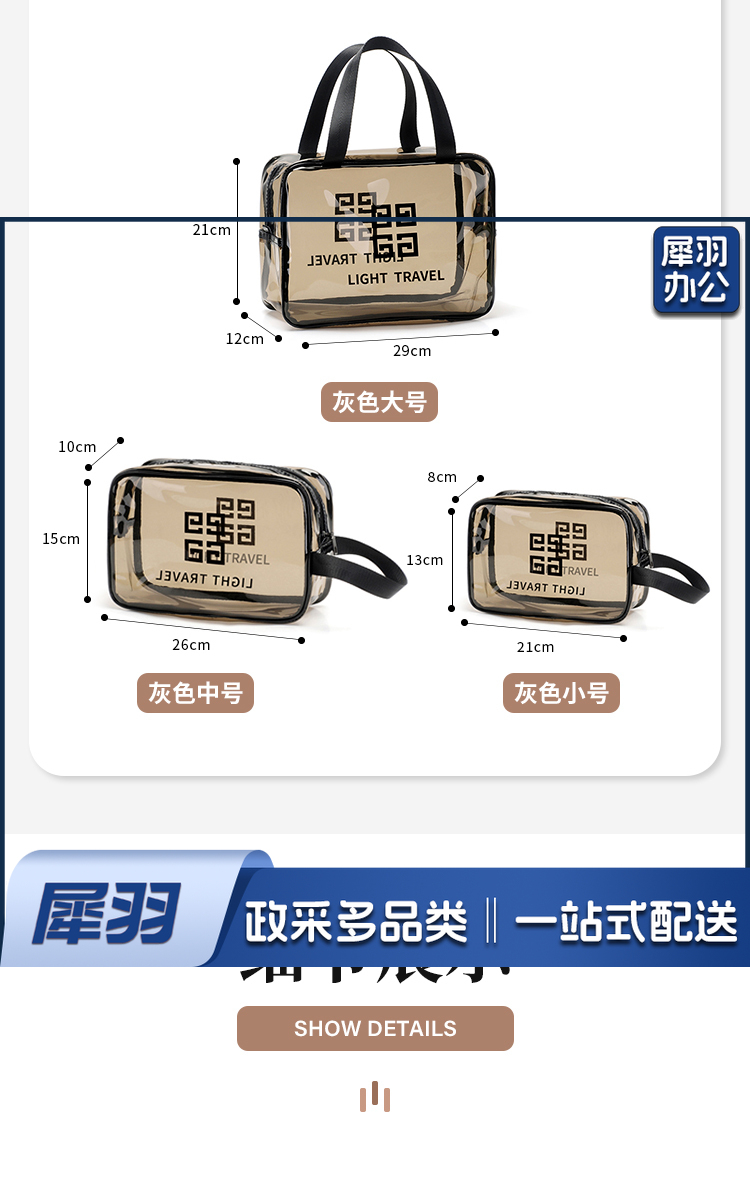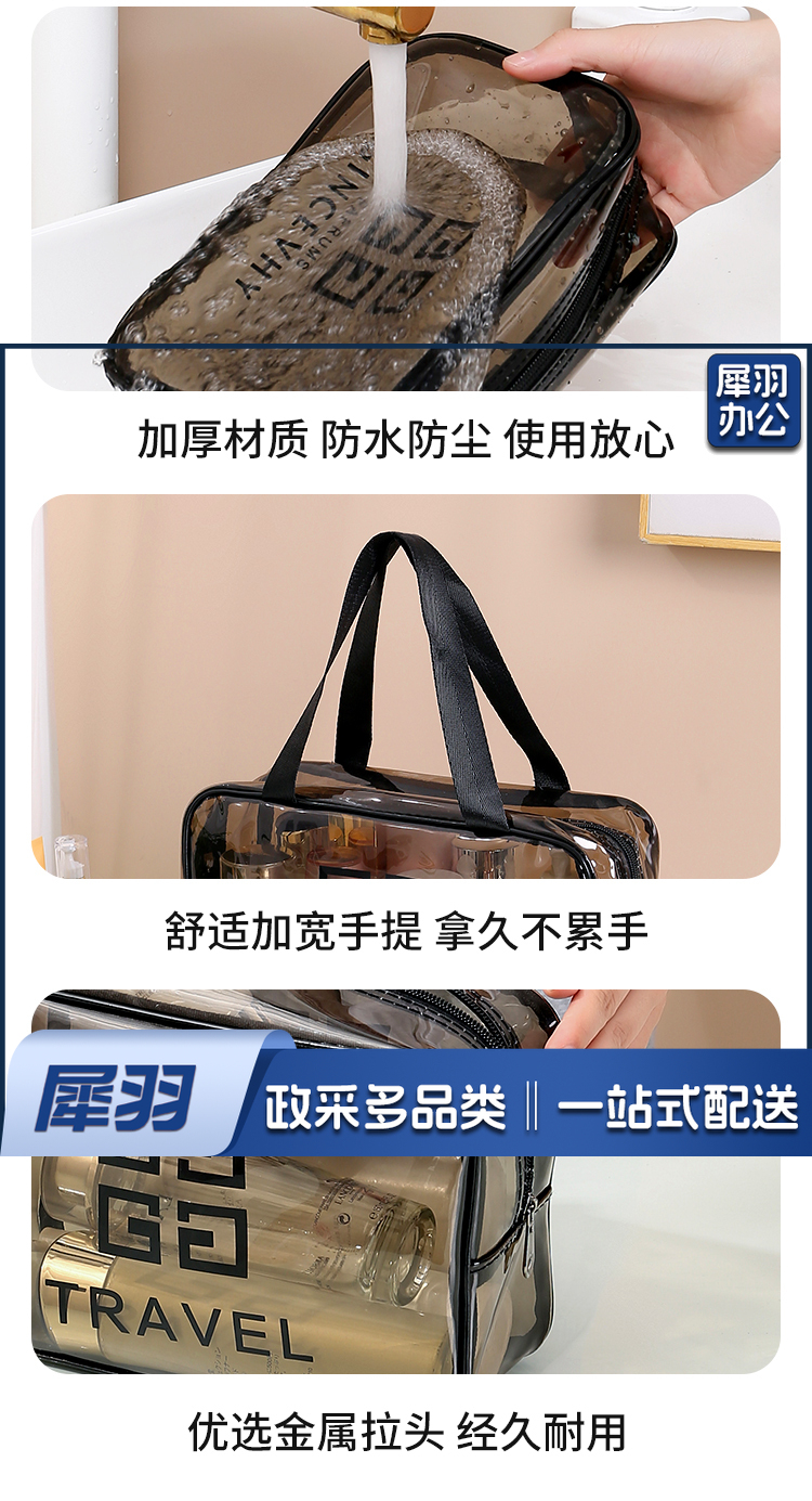 化妆品收纳袋旅行洗漱包防水收纳包韩国简约储物袋 黑灰色透明款小号