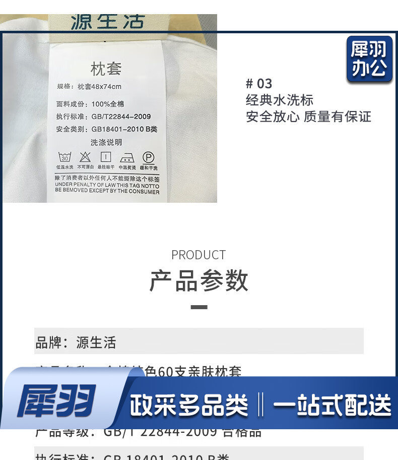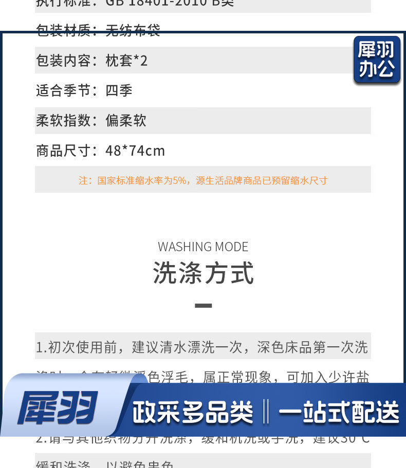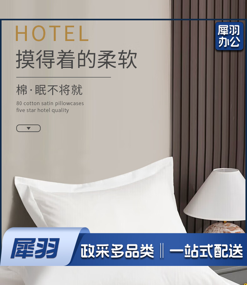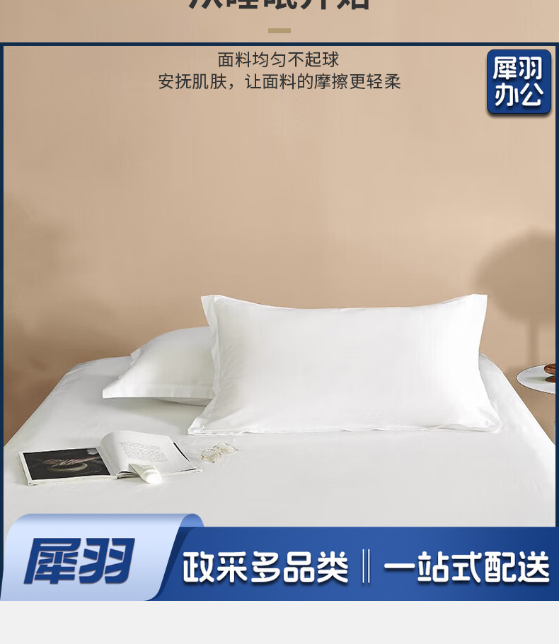 枕头套一对装 酒店60支纯棉枕套 纯色单人枕芯套 白色 48*74cm