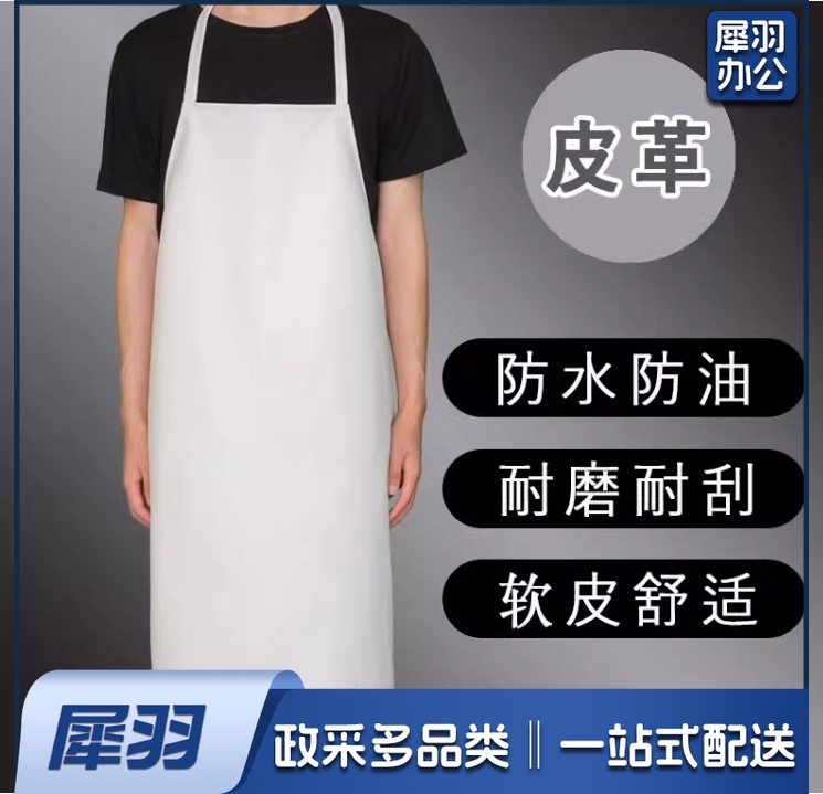 皮PU围裙防水防油软皮餐饮食堂专用女白色厨房工作服男食品厂围腰