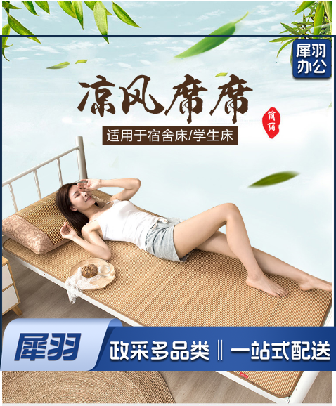 学生凉席竹席 双面竹藤凉席宿舍单人0.9米床上下铺空调席子 90*190cm(不含枕套) 简约席