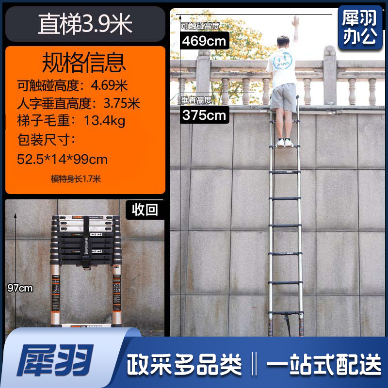 家用不锈钢伸缩梯子人字梯加厚折叠梯多功能升降工程楼梯 (人字梯3.9+3.9米【加宽踏板】