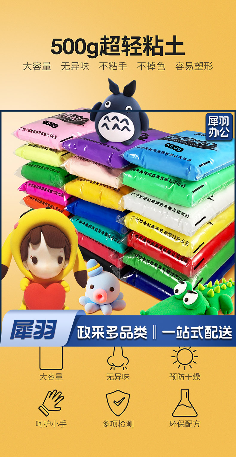 画材酷100克粘土儿童大包装白色黑色100g袋袋装24色轻粘土彩泥太空泥儿童手工制作幼儿园diy手工材料