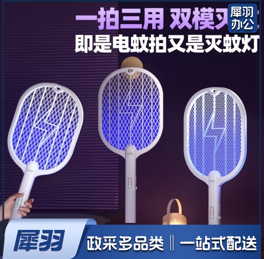 电蚊拍灭蚊灯两用锂电池充电式紫光诱蚊带底座灭蚊神器苍蝇拍