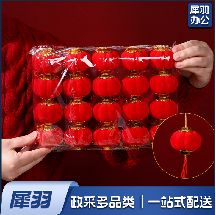 6#小灯笼挂件户外室内树上挂串挂件装饰植绒灯笼 20个/包