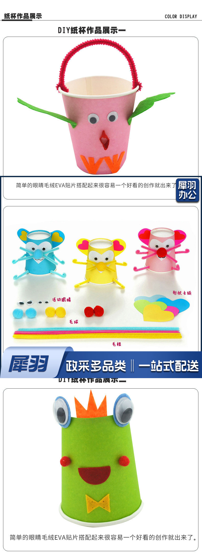 幼儿园早教白色彩色 纸杯 创意美术幼儿童diy制作材h 彩色纸杯(颜色随机100只装)