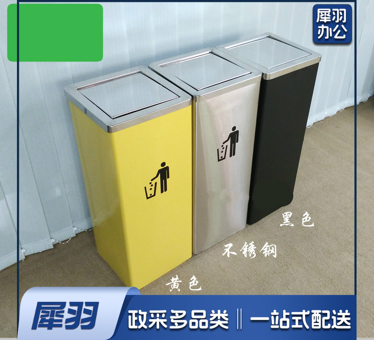 不锈钢方形黑色摇盖翻盖垃圾桶小号